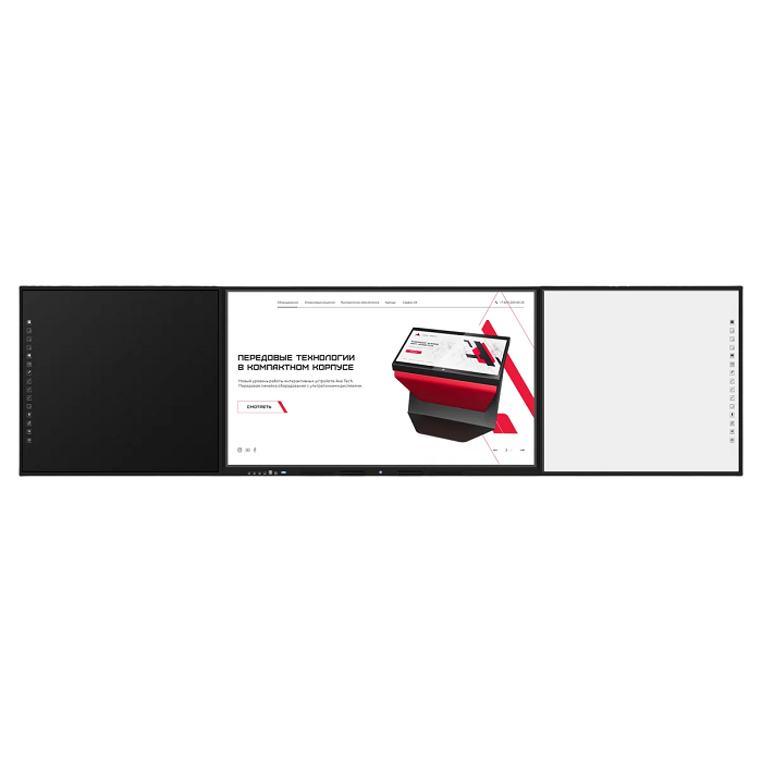 - в его состав входят: центральная сенсорная панель, дополненная двумя дополнительными досками – маркерными или меловыми, расположенными по краям;