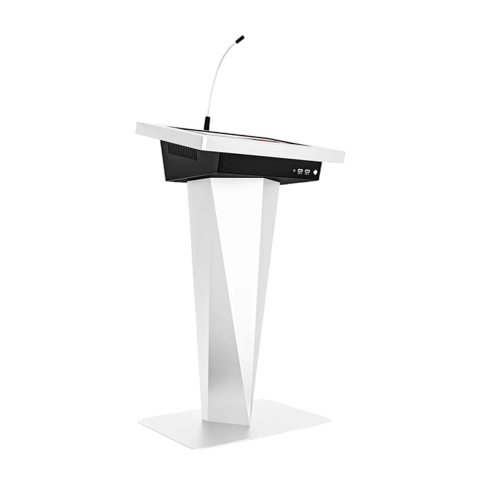 Выступить на большую аудиторию легко и просто, если вы используете интерактивную трибуну Terra 27". Изящный дизайн корпуса, сенсорный дисплей, микрофоны, а также набор всех необходимых разъемов для подключения техники помогут качественно донести информацию до слушателей и запомнить ваше выступление. Возможность брендирования корпуса станет неотъемлемой частью для гармоничного вписывания в пространство. В одной моделе сочетается все, что нужно для интересных и запоминающихся лекций и конференций!